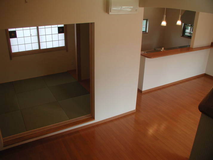 南面する日当たりの良い配置で各部屋とも気持ちの良い採光が奥まで届きます。1階は繋がったLDK(30帖)で吹き抜けのリビング階段で開放感があります。リビング脇の和室コーナーは床を15センチほど高くして、一体でありながら隔たったイメージでもお使いになられます。